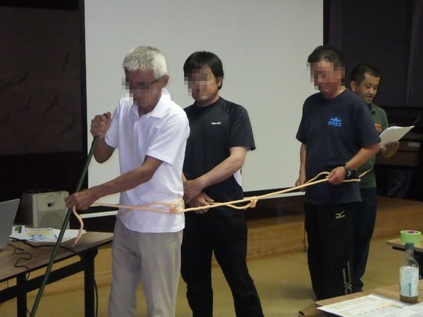 時間に余裕があったので、冠水時にロープでつながっての移動方法と、ロープの結び方の説明もしたのですが、そこが一番盛り上がりました。